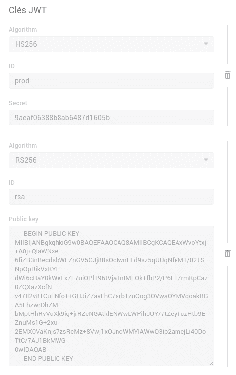To add a JWT key, you have to set an identifier, the Key ID, and the key itself: