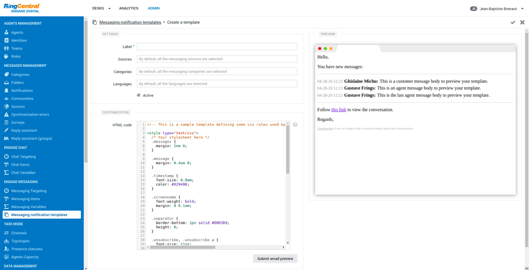 There is an admin menu to add customized templates: