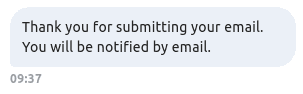 Then after the visitor submits their email, this message will be displayed: