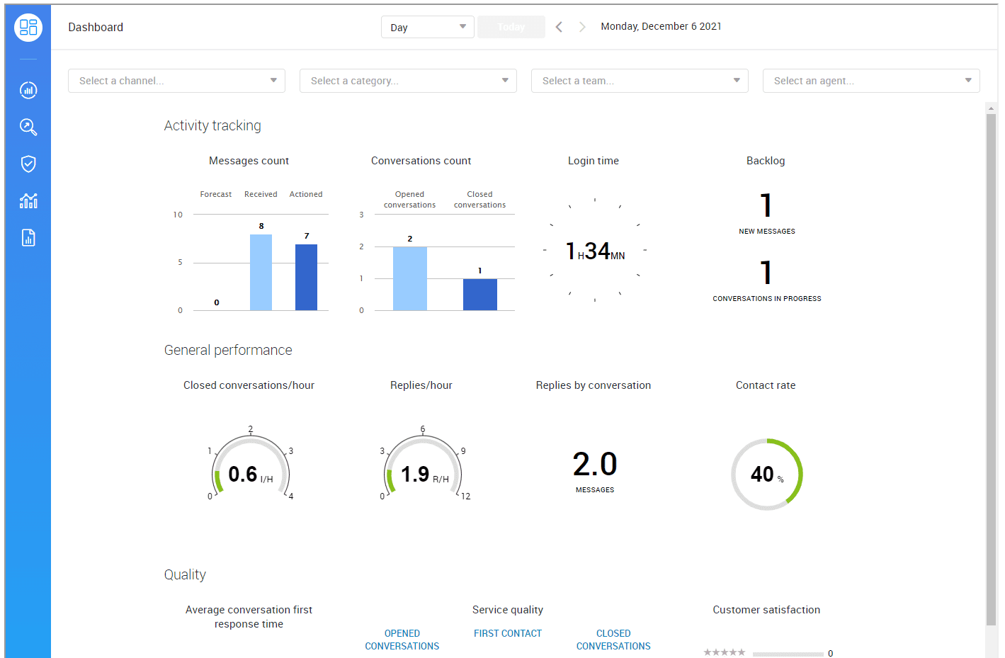 For analytics views, you can add the no-sidebar value to the view parameter in order to choose whether or not you want to display the sidebar. If you want to specify the two values, they should be comma separated (e.g. view=no-header,no-sidebar). The no-sidebar value will prevent agents to go to another statistic.