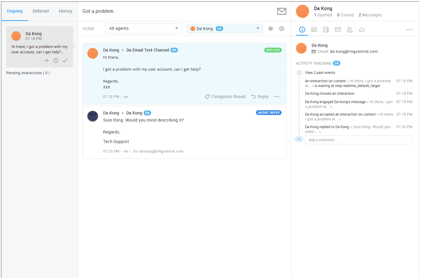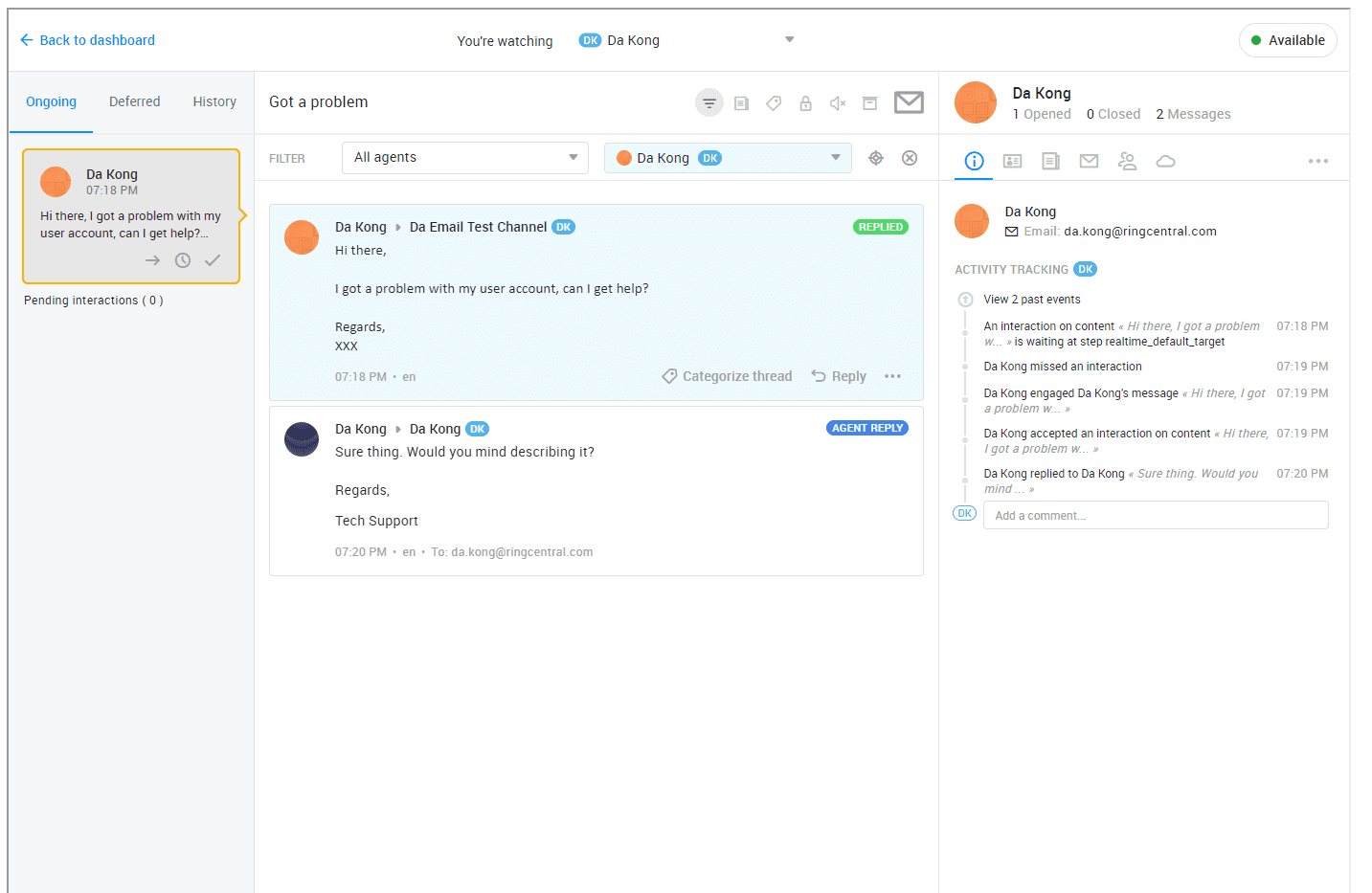The task permalink view displays a single task and doesn't allow navigating to other parts of the interface (other tasks, pull view, admin, etc…). Any task related action (transfer, defer, etc...) can be taken from the web console or handled through RingCentral RingCX Digital REST API since it's not available in this view.