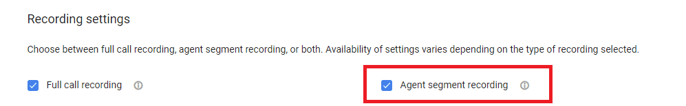 - For Queue: Go to Routing -> Voice queues & skills -> Select your Queue -> Recording settings