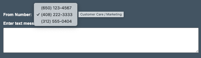 For example, if you need to display three phone numbers that a user can select to send an SMS from, read each number’s SMS configuration and store the information in an array, then create a dropdown list as shown below: